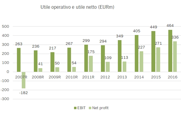- Questo sacrificio di circa 0.3% viene recuperato gradualmente sul personale e sugli ammortamenti per arrivare a un utile operativo di 464 milioni, margine 6.4%, solo 0.1% sotto il 2015.