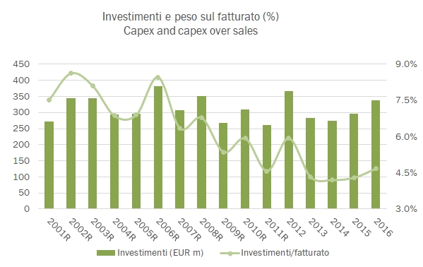 - E questo viene dagli investimenti, che effettivamente hanno dato segni di risveglio nel 2016, tornando sopra il 300 milioni e mostrando un recupero del “ciclo”.
