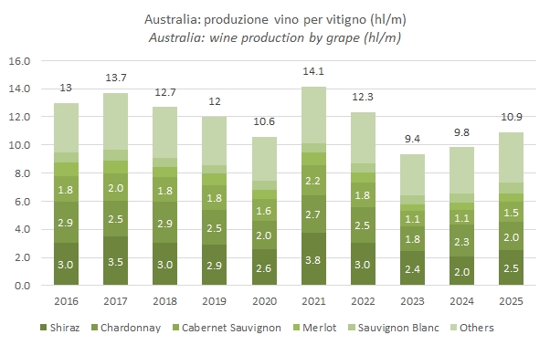 L’industria vinicola australiana, dopo un periodo di forti oscillazioni dovute sia a fattori climatici sia a questioni commerciali internazionali (in particolare con la Cina), mostra nel 2025 segnali di stabilizzazione e parziale ripresa. I dati più recenti rivelano un lieve miglioramento dei prezzi delle uve e un contenuto aumento del valore della produzione, dopo il rallentamento osservato tra il 2022 e il 2024.