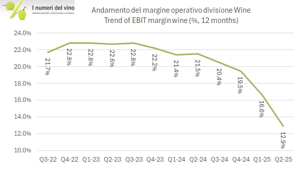 Tornando alla divisione vino, CBrands resta una grande azienda del settore ma ovviamente la sua rilevanza sta drasticamente calando.