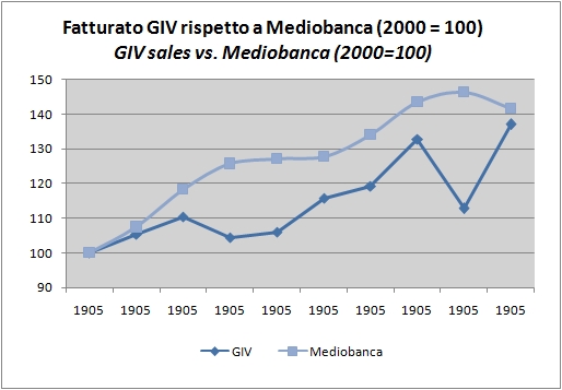 Detto questo, i numeri che andiamo a commentare mostrano il segno evidente della crisi, sia dal punto di vista delle vendite che dei margini. Le vendite sono cresciute nel 2009 da 250 a 304 milioni. In realta’ il confronto andrebbe fatto con un fatturato di EUR288 milioni (fonte: GIV). Tuttavia, se si tiene conto dell’incorporazione del ramo d’azienda Coltiva, l’andamento delle vendite e’ stato, a quanto mi ha comunicato GIV, sostanzialmente stabile. Se rileggiamo questi dati alla luce di questo abbiamo un 2009 poco piu’ che stabile ma che si innesta su un 2008 in calo del 15%.