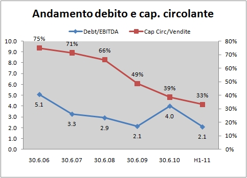 Il debito di conseguenza raggiunge 140 milioni, in salita dai 118 di fine giugno 2010 ma uguale a dicembre 2009. Data la stagionalita’ dell’attivita’, si puo’ dire che il gruppo e’ in fase di riduzione dei debiti.
