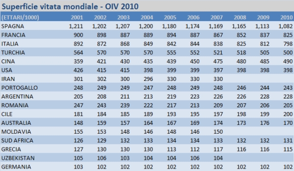Il post “macroeconomico” della produzione mondiale di vino e’ sempre piuttosto interessante, come anche la lettura del rapporto redatto da OIV. Che cosa dice OIV? Che la produzione mondiale di vino e’ scesa nel 2010, forte di una annata non eccezionale ma anche delle azioni europee relative all’espianto della vite (superficie vitata mondiale -1.7% nel 2010 secondo OIV a 7.55 milioni di ettari) . In questo modo, secondo l’organizzazione, il mercato del vino resterebbe “in tensione” dato che la domanda nel 2010 non dovrebbe essere scesa in modo significativo (-0.1/-0.2% secondo OIV), attestandosi tra 230 e 240 milioni di ettolitri; mentre l’offerta dovrebbe essere scesa dallo stimato 271m/hl del 2009 a 256-263m/hl (ricordate sempre che OIV considera un certo quantitativo (30m/hl) come utilizzati per scopi industriali (distillazione) e non quindi strettamente consumati.