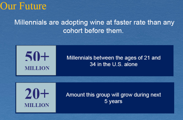 Capitolo nuovi prodotti. I nuovi prodotti non sono americani. I grandi successi del 2010 si chiamano Riesling (tedesco), spumante americano. Ma i prodotti in crescita vorticosa sono a base di Moscato, di Prosecco e di Malbec. A proposito, il famoso Black Box (bag-in-box) e’ a base Malbec…