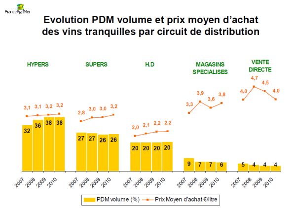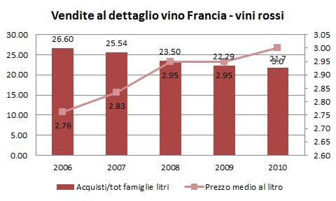 Le vendite al dettaglio di vino in Francia nel 2010 hanno avuto un andamento contrastante. Da un lato e’ cresciuta la penetrazione degli acquisti, soprattutto sui vini rossi, dall’altro lato l’intensita’ degli acquisti (sia come quantita’ che come numero di acquisti) e’ calata, piu’ che compensando l’incremento della penetrazione e, come ormai normale, dei prezzi di vendita.