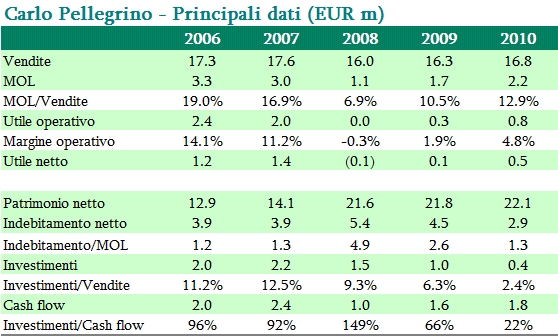 • La generazione di cassa resta molto buona, anche grazie al forte calo degli investimenti del 2010, quando e’ peraltro iniziato un nuovo piano di investimenti da oltre EUR1 milione.
