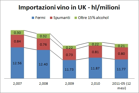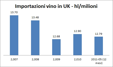 Importazioni di vino nel Regno Unito – dati a maggio 2011