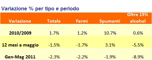 • La dogana ha rilasciato nei primi 5 mesi dell’anno 4.8m/hl, il 2.3% in meno dello stesso periodo del 2010.