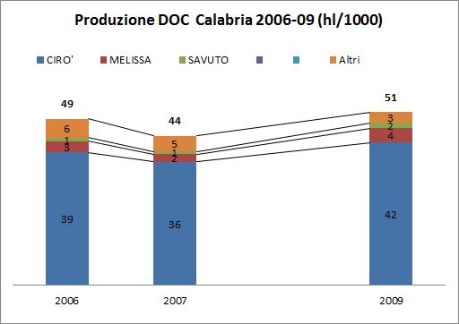 Calabria – produzione vini DOC/DOCG – aggiornamento Federdoc 2009