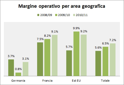 - Le vendite in Est Europa sono cresciute invece del 7% a 103 milioni, la miglior performance del gruppo, anche se l’utile operativo non e’ migliorato rispetto all’anno precedente.