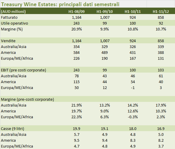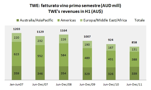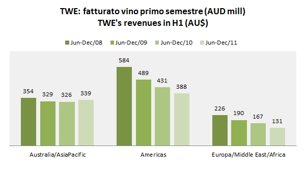 - In Australia gli utili stanno cominciando a riprendersi, grazie al controllo dei costi e nonostante vendite stabili. TWE vende 4.5 milioni di casse con un margine del 16% circa, in rialzo.