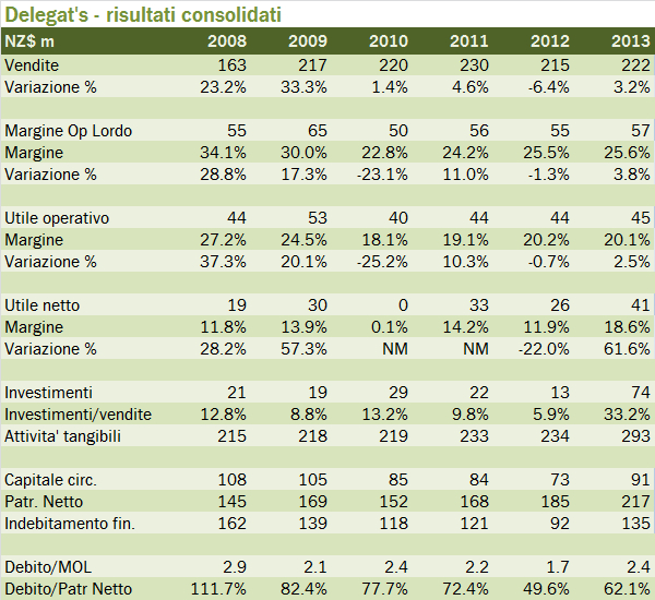 - Terminiamo con le prospettive. La vendemmia 2013 è stata il 40% sopra lo scorso anno e il 4% sopra le attese. Ciò ha consentito a Delegat’s di “recuperare” le scorte che aveva lasciato indietro. Considerando questo e le recenti acquisizioni ci si può attendere un buon 2014…