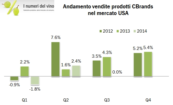 • I volumi di vendita di vino nel terzo trimestre sono cresciuti del 2% a 18 milioni di casse, con la componente USA stabile e un incremento del 7% delle consegne internazionali che raggiungono così 4.3 milioni di casse. Se invece parliamo di vendite al dettaglio, nel terzo trimestre in USA i marchi CB sono rimasti stabili.