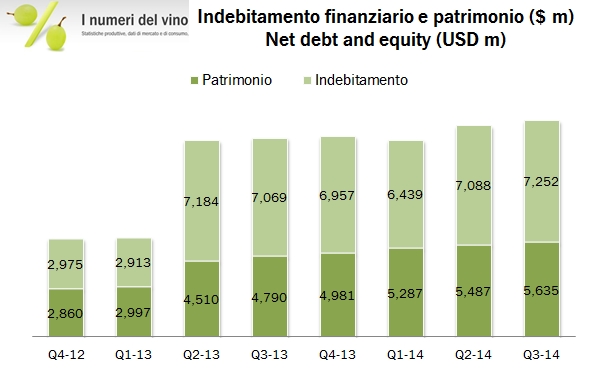 • La struttura finanziaria vede un incremento del debito a 7.3 miliardi di dollari, rispetto a 7.1 dello scorso trimestre e ai 7 della fine dello scorso anno fiscale. Quest’anno Constellation ha annunciato significativi investimenti e ha pagato l’ultima tranche di 500 milioni di dollari per comperarsi la Corona. Le previsioni formulate da Bob Sands, Presidente e CEO della società, sono di fare oltre 1 miliardo di dollari di generazione di cassa dall’attività operativa.