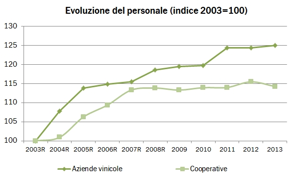 In questo post pre fine settimana ci concentriamo sui risultati delle cooperative vinicole nel 2013, come riportati dal rapporto Mediobanca pubblicato lo scorso marzo. Due sono le cose che saltano all’occhio in questi numeri: 1) che nel 2013 le cooperative hanno avuto un anno “commercialmente” molto migliore dei precedenti, con una crescita del fatturato del 7% (contro il 6% delle aziende), e un balzo dell’11% delle esportazioni (lo storico tallone d’Achille del settore, contro il +9% realizzato dalle aziende). Il secondo è un ritmo di investimenti che è rimasto sostenuto (contro un calo piuttosto visibile per le aziende, che però avevano investito molto di più nel 2012), che ha determinato un livello di debito stabile (quando invece per le aziende il debito è calato). Infine, le cooperative prese in esame hanno ridotto il personale, -1% a 4373 dipendenti, in controtendenza rispetto all’andamento delle vendite e all’evidenza delle aziende, che invece hanno avuto un leggero incremento della forza lavoro (+0.6%). Passiamo a leggere i numeri.