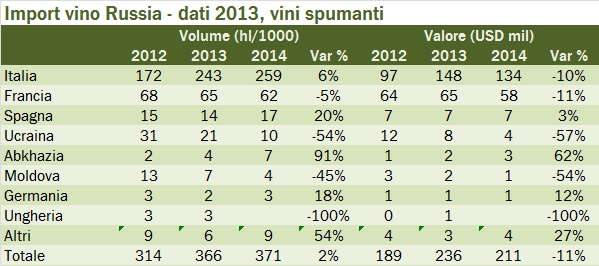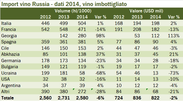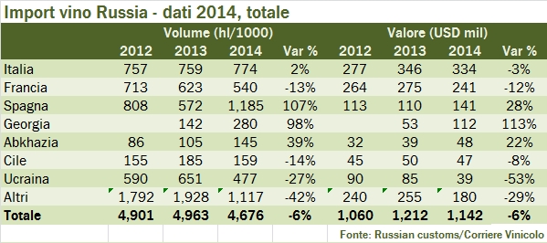 Russia – importazioni di vino 2014