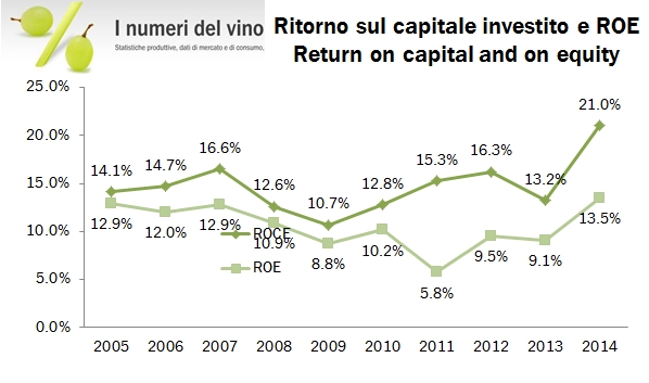 Baron de Ley ha chiuso un dignitoso 2014 dal punto di vista finanziario, anche grazie al rimbalzo delle vendite nel mercato domestico, con vendite in crescita del 5%, un margine MOL quasi stabile e un utile in decisa crescita grazie però a componenti non ricorrenti relativi ai cambi e all’assenza di svalutazione di attivi. Alla fine, l’utile netto cresce da 18 a 28 milioni di euro. I driver sottostanti non sembrano però così promettenti: in particolare, la quota dei vini imbottigliati sul totale scende dal 94% al 92% del fatturato e l’azienda si è trovata a far fronte a una variazione della domanda di vino verso i vini bianchi rispetto ai vini rossi, su cui è prevalentemente concentrata (la denominazione Rioja rappresenta il 95% della produzione). Fatte queste precisazioni, l’azienda continua a generare cassa in modo sostanziale, tanto che la posizione finanziaria sale a oltre 100 milioni di euro (secondo la nostra stima) nel 2014.
