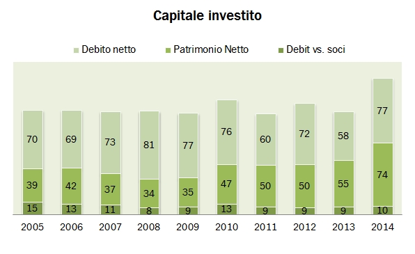 I numeri 2014 di Caviro includono l’impatto dell’acquisizione di Cesari (70%) in Valpolicella, effettuata a gennaio (pagata 8-9x il MOL) e quindi completamente inclusa in questi numeri. Apro con questa puntualizzazione perché si tratta di un fatto marcante: Cesari ha contribuito 24 milioni di vendite al bilancio consolidato, che pur mostra un fatturato in leggero calo. Ciò è da ricondursi alla riduzione delle vendite della cooperativa madre Caviro SCA, che è passata da 209 milioni a 188 milioni di fatturato tra il 2013 e 2014. Da questo punti di vista, i risultati 2014, otticamente “belli”, con un MOL in crescita, sono “aiutati” da Cesari e hanno dovuto affrontare il calo della divisione distilleria, colpita indirettamente dal calo dei prezzi del petrolio, che ha avuto un impatto sul prezzo del bioetanolo. La cartina tornasole è quella del debito, che dopo un forte progresso nel 2013 (anche dovuto alla gestione del circolante, alla tempistica delle vendemmie e alle scelte di approvvigionamento nella nuova divisione “grandi vini”), è ritornato a 77 milioni, con un rapporto di circa 3x rispetto al MOL, un livello comunque contenuto tra le cooperative.