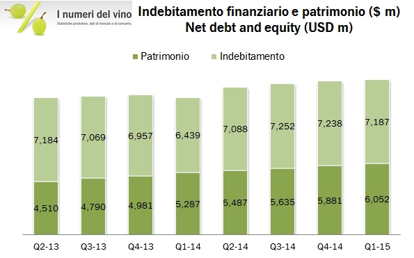 - Finanziariamente il gruppo mantiene un indebitamento stabile a circa 7.2 miliardi di dollari, ma aumenta il patrimonio netto (da 5.3 a 6 miliardi di dollari maggio 2015 contro maggio 2014). Gli investimenti sono significativi (vi ricordo che CB prevede di investire quest’anno un miliardo di dollari nel segmento birra, praticamente la stessa cifra che il management ritiene di generare dall’attività), talche sarà probabile assistere a un incremento dei debiti nel breve termine, anche considerando la previsione di pagare oltre 300 milioni di dollari di interessi, le tasse (30%, cioè circa 400 milioni di dollari), l’acquisizione di Meiomi (315 milioni), oltre alla ripresa del pagamento dei dividendi (circa 250 milioni di dollari annui).