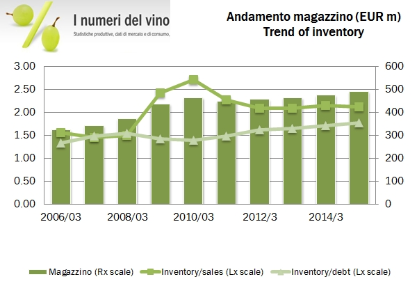 - Dal punto di vista finanziario, LP ha mantenuto un debito stabile nel 2014. Con un cash flow di circa 27-28 milioni di euro, e dividendi pagati per circa 6 milioni, la parte rimanente sono andati in investimenti (9 milioni) e assorbimento di capitale circolante (11 milioni, con il magazzino che cresce di 16 milioni di euro). Ne risulta un debito di 277 milioni di euro, che corrisponde a quasi 6 volte il MOL, anche se chi legge ben sa che non è questo il rapporto da guardare: infatti la “copertura” del magazzino sul debito cresce da 1.7 a 1.8 volte.