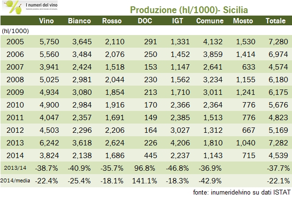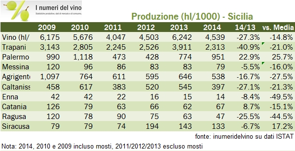 Sicilia – produzione di vino 2014 – dati ISTAT