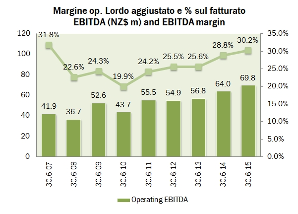 Il neozelandese Jim Delegat non si ferma: il gruppo forte ormai di oltre 200 milioni di dollari locali di vendite ha investito pesantemente nel 2015 (oltre il 30% del fatturato) e prevede di fare ancora di più nel 2016 (oltre il 40%) per rendere ancora più profittevole e fornire nuovi spazi di crescita al gruppo. Se questo pesante ciclo di investimenti abbatte temporaneamente il ritorno sul capitale, abbiamo già visto in passato come gli investimenti di questa azienda abbiano poi avuto una adeguata remunerazione. Intanto, nel 2015 per snocciolare due numeri, le vendite sono cresciute del 9% a 2.2 milioni di casse, il fatturato è cresciuto del 4% (+11% se guardiamo soltanto al vino) e i margini aggiustati sono per la prima volta risaliti al 30% (MOL). Il prossimo anno (2015/16) sarà senz’altro più duro. Con una produzione in calo del 26% in Nuova Zelanda, immaginiamo che la crescita dei volumi sarà più difficile da ottenere, anche se gli amministratori fanno specifico riferimento al fatto che il gruppo è ben posizionato per raggiungere gli obiettivi di vendita. Quali sono questi obiettivi? Passare da 2.2 a 3.2 milioni di casse entro il 2020, quindi +45%, da raggiungere con un +71% in Nord America, +36% in Asia (e mercati domestici) e un +13% in Europa. L’obiettivo 2016 è di arrivare a 2.38 milioni di casse, quindi +8% rispetto al 2015.