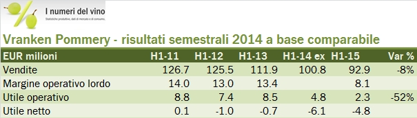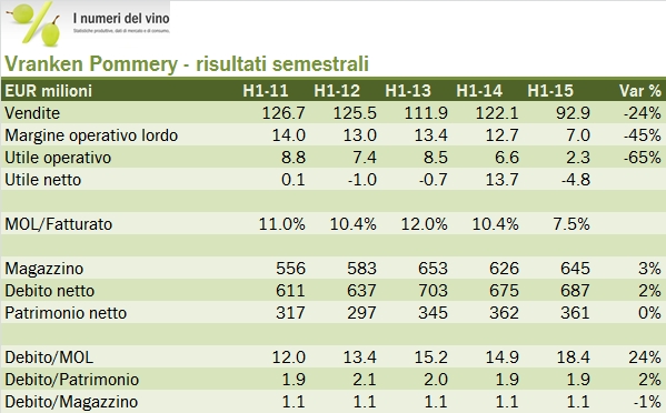 Dopo aver visto i numeri semestrali terribili di Lanson, i risultati semestrali di Vranken sarebbero facilmente comprensibili dicendo “sono andati male anche loro”. E invece no, a quanto pare, perlomeno a livello di fatturato. Vranken, come abbiamo visto nel post sui dati annuali, ha un buon motivo a giustificazione del calo delle vendite, che è l’apporto di Listel, attiva nei vini fermi, a una JV ora consolidata sotto la linea dell’utile operativo al 50%. Ma non solo, circa 10 milioni di fatturato sono stati spostati dal primo al secondo semestre per via delle tempistiche di consegna. Quindi, il fatturato che a prima vista cala del 24%, sarebbe sceso soltanto dell’8%. Se poi ci ributtiamo dentro questi 10 milioni “spostati” arriviamo a una leggera crescita (2-3%). Detto questo, l’utile operativo comunque scende in maniera fragorosa, con o senza la JV sui vini fermi e ciò ha avuto un certo impatto sulle quotazioni di borsa, sempre superiori a inizio anno ma di certo ben sotto i massimi. Andiamo a leggere insieme qualche dato.