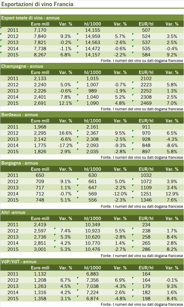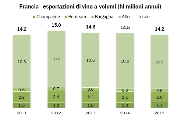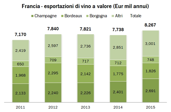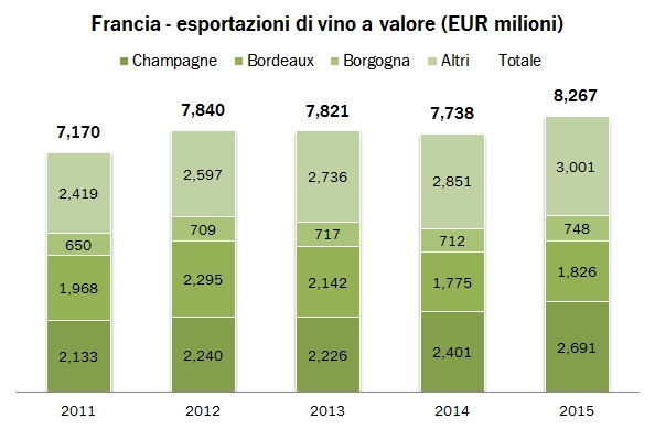 Francia – esportazioni di vino 2015