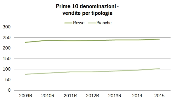 - Tra gli altri dati, vi segnalo che tra i vini che compaiono nella lista ci sono i pugliesi Negroamaro e Primitivo che sono cresciuti di oltre il 10% nel 2015.