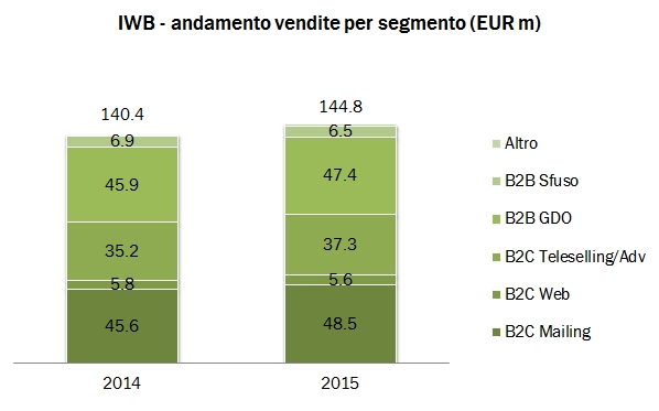 Memore delle lunghe discussioni con il signor Pierluigi sui risultati di IWB 2014, mi sono guardato con discreta cura i numeri 2015, da un mesetto resi disponibili sul sito internet. Diciamo che il 2015 è stato un anno di transizione per il gruppo, che si è focalizzato sul “recupero” dei clienti di Giordano che si erano allontanati dal brand e sullo sviluppo della base clienti. Ciò è costato 1.1 milioni di euro cui si aggiungono oneri legati alla costituzione del gruppo e ristrutturazione che hanno sottratto all’utile netto altri 0.8 milioni di euro. Ne deriva un andamento economico leggermente migliore di quello dello scorso anno (vendite +3%, EBITDA -5%, utile netto +8%), una volta esclusi questi costi; altrimenti, l’EBITDA sarebbe sceso da 13 milioni a 11 milioni e l’utile netto da 5.1 a 3.6 milioni. Passando all’andamento commerciale, va meglio in Italia (nel primo semestre le vendite erano scese), mentre continua il calo in Germania e il balzo della Svizzera del primo semestre si è rivelato un fatto di natura transitoria, più che compensato dalla caduta delle vendite nel secondo semestre. Austria e Resto del mondo hanno continuato a crescere. Infine, una curiosità che aveva scatenato le discussioni sul blog: le vendite online nel segmento B2C di IWB sono calate nel 2015 a 5.6 milioni di euro, da 5.8 milioni.