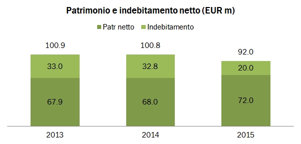 Direi invece che il dato più impressionante è il notevole calo dell’indebitamento passato dai 32,6 del 2014 ai 20,1 milioni del 2015.