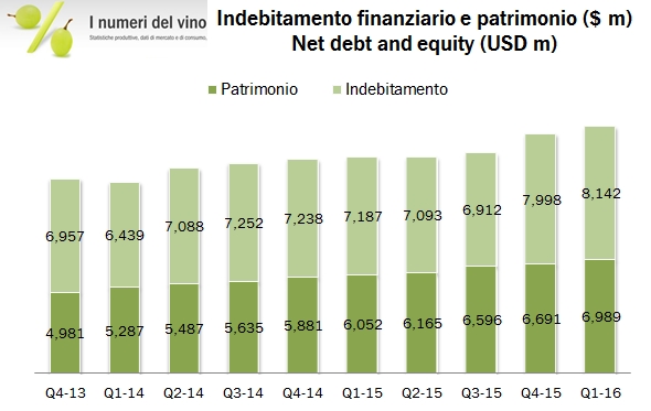 Anche nei primi tre mesi del 2016 Constellation Brands ha prodotto ottimi risultati e continuato a investire pesantemente, in linea con le indicazioni già fornite tre mesi fa. Proprio queste indicazioni, sia di investimenti che di utili, non sono state questa volta ritoccate al rialzo come invece era successo nei trimestri precedenti. La stima su fine anno è sempre di produrre utili tra 6.05 e 6.35 dollari ad azione per l’anno fiscale che termina a gennaio 2017. Venendo ai dati del trimestre, la crescita è stata del 15% sul primo trimestre 2015, con un contributo importante della birra, ma con dati positivi anche nel segmento vino, sia considerando le acquisizioni recentemente messe a segno che togliendole. Così, come già successo nei precedenti trimestri, il mercato ha accolto molto positivamente l’annuncio, con un rialzo delle azioni da circa 155 dollari al massimo storico di oltre 165. In questo momento, Constellation Brands ha un valore di borsa di oltre 32 miliardi di dollari. Andiamo a leggere i dati in dettaglio.