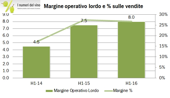 - I margini sono in leggero calo, sia per l’eccezionalità del 2015 che per i forti investimenti dell’azienda nel rilancio del prodotto “Modello”, che rappresenta una quota importante dei volumi venduti. Il MOL cresce del 6% a 8 milioni, mentre con ammortamenti pressochè stabili l’utile operativo cresce al medesimo ritmo del fatturato, +9%. Tasse più basse e guadagni su cambi consentono poi a Masi di mettere a segno un forte incremento dell’utile netto (+26%), che però non riveste una grande rilevanza.