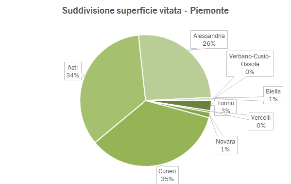 - Dal punto di vista dei marchi di qualità non ci sono novità. Il Piemonte mantiene una quota dell’85% della produzione nei vini DOC, 44% rossi e 41% bianchi, e il 15% nei vini da tavola, perlopiù rossi.