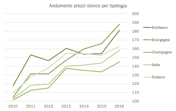 - I primi vini in classifica li avete visti. I prezzi dei primi tre classificati di cui sopra sono cresciuti del 25% circa, sopra la media del 14% circa del campione, con 40-50 tipologie trattate (qui si tratta di annate), contro la media del resto del campione di 20 referenze.