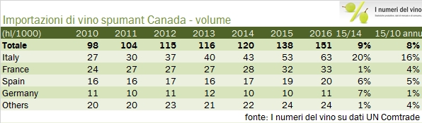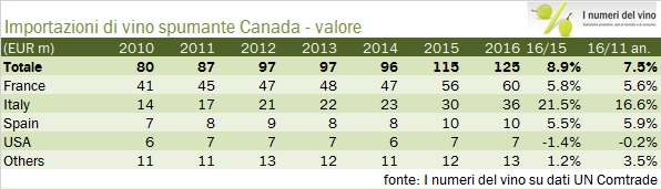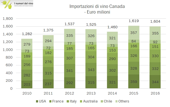 Canada – importazioni di vino 2016