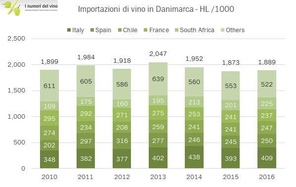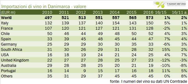 Danimarca – importazioni di vino – aggiornamento 2016