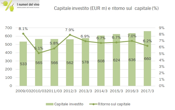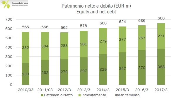 - Dal punto di vista finanziario, Laurent Perrier ha leggermente aumentato il debito a 271 milioni di euro (+4 milioni, ma dopo aver pagato 6 milioni di dividendi) . La leva è comunque limitata, considerando le scorte di Champagne di oltre 500 milioni di euro (+10 milioni) e il patrimonio netto che sfiora 390 milioni di euro. La flessibilità finanziaria di cui gode le consente di continuare gli investimenti, che nel 2016 sono stati di 13 milioni di euro (16 milioni nel 2015).