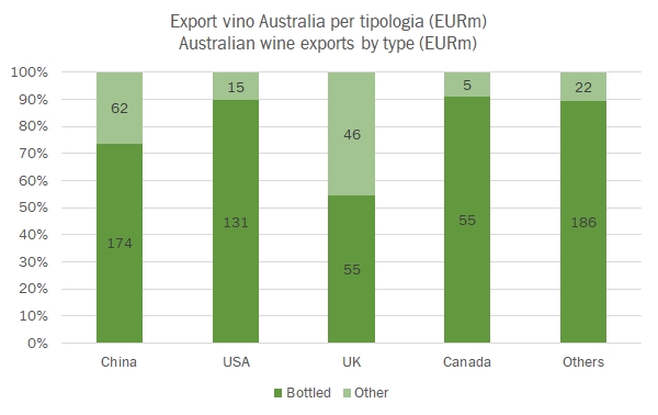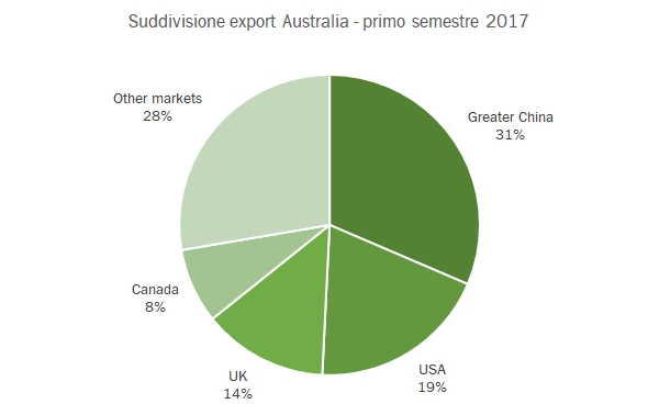 - La geografia del vino australiano sta dunque cambiando radicalmente dai paesi anglosassoni a quelli asiatici. Se mettiamo insieme anche Malesia, Thailandia, Corea e compagnia arriviamo al 47% circa delle esportazioni di vino del semestre.
