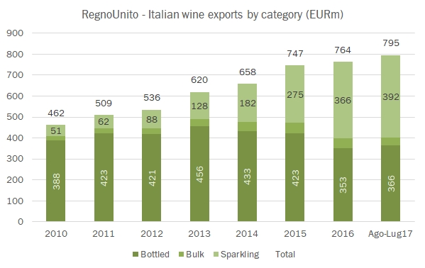 - Il trend è molto robusto in tutte le categorie. I vini fermi in bottiglia sono a +6% nei 7 mesi e +7% nel mese di luglio, per i vini spumanti siamo a +15% e +17% rispettivamente e anche gli altri prodotti (sfusi principalmente) viaggiano a un ritmo nell’intorno della doppia cifra.