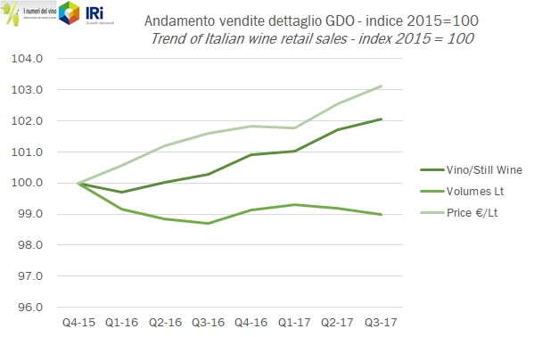Vendite al dettaglio di vino in Italia – primi nove mesi 2017