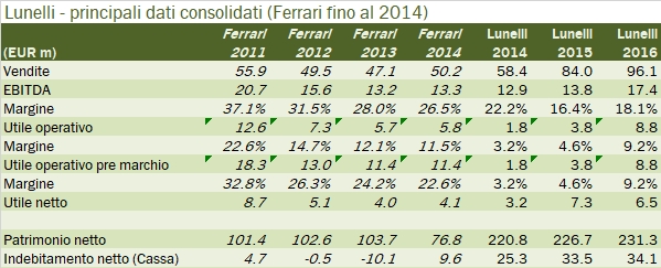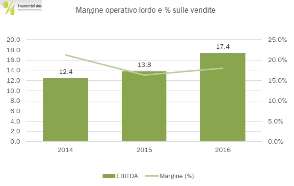 - Il problema di Bisol, sottolineato anche nel 2016 è quello dei margini negativi a causa dell’elevato costo delle materie prime. Quest’anno non si vede come nello scorso esercizio: nel contesto generate dei dati Lunelli, l’EBITDA cresce da 14 a 17 milioni, per un margine che passa dal 16.4% al 18.5%. E’ soltanto sull’ultima linea nel conto economico che il peso di Bisol viene reso noto nella relazione degli amministratori: la perdita netta è stata di 2.7 milioni di euro, contro un utile di 11 milioni di Ferrari e un utile consolidato di 6.5 milioni. Dopo aver parlato con l’azienda, va peraltro precisato che alcuni oneri di ristrutturazione e il carico di ammortamenti intangibili che sono emersi con la rivalutazione dei marchi hanno un effetto particolarmente negativo nel 2016.