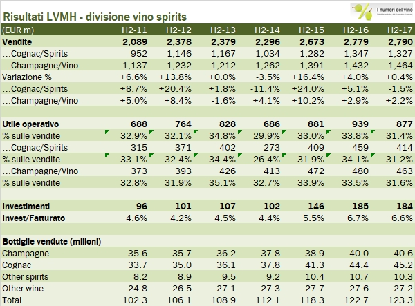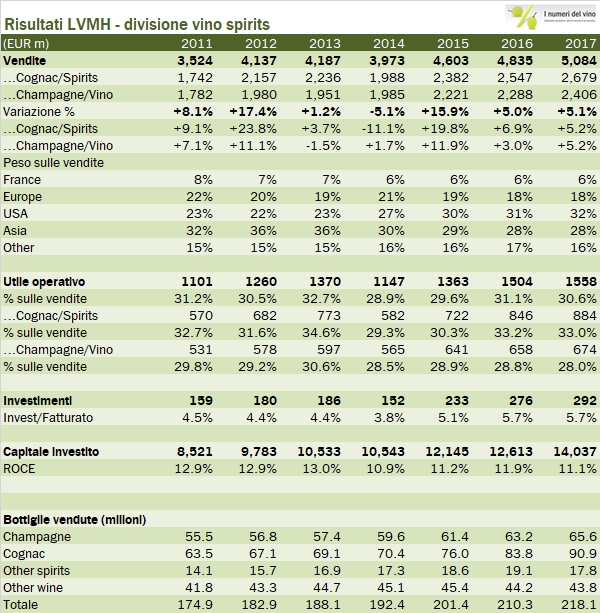 LVMH divisione vino – risultati 2017