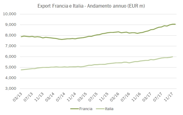- Sono molto buoni anche i dati del resto della Francia, che hanno un trend piuttosto simile ai dati italiani, non avendo subito cali negli ultimi anni. Sono 3.4 miliardi di euro e la maggior parte dei volumi, 11.1 milioni di ettolitri, che nel 2017 crescono del 6%. Di nuovo, il loro trend sul periodo 2012-2017 è +5.3% annuo, come l’Italia.