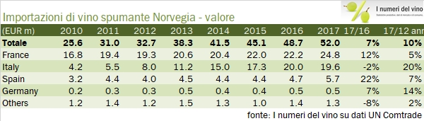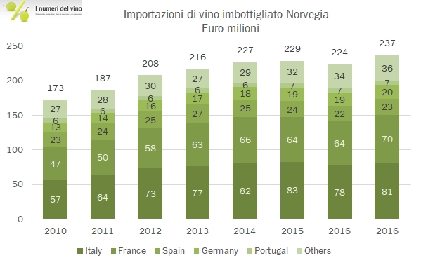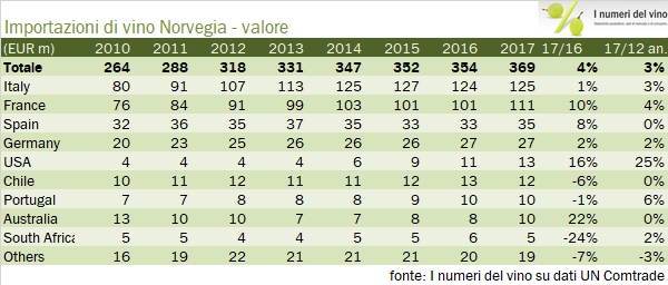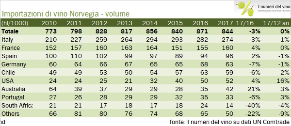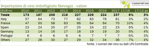 Norvegia – importazioni di vino 2017
