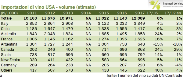 USA – importazioni di vino – aggiornamento 2017