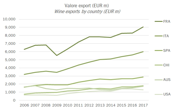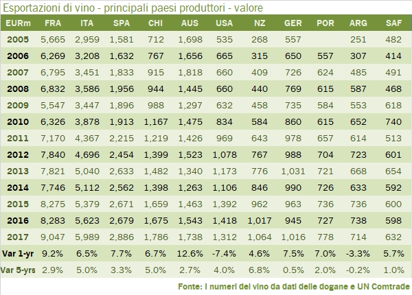 Le esportazioni di vino nel mondo – aggiornamento 2017