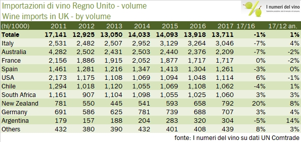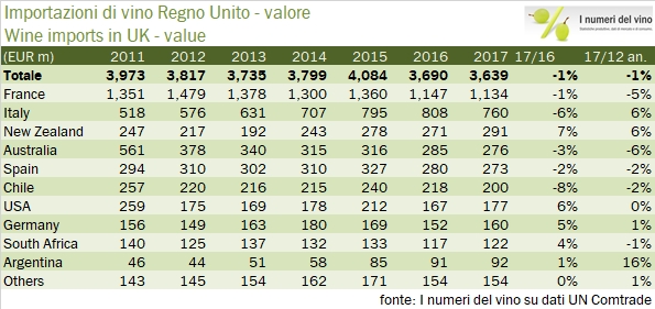 Regno Unito – importazioni di vino 2017