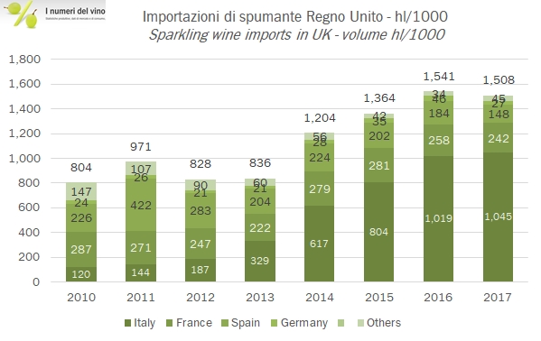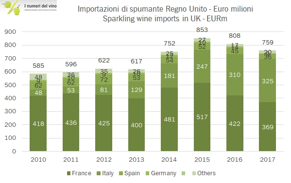 • Il 2018 sarà un anno sfidante perché tutti gli indicatori dell’economia inglese sono girati per il verso sbagliato. Sarà certamente critico per l’Italia capire la sostenibilità della corsa dei nostri spumanti, guidati dal successo del Prosecco.