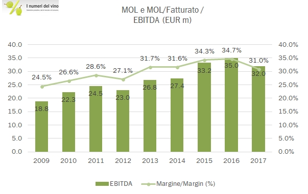 - Ne risulta un quadro molto solido, anche se la relazione degli amministratori termina con un paio di considerazioni di cautela, circa gli effetti della vendemmia 2017 che continueranno anche quest’anno e il rischio di dazi doganali da parte dell’amministrazione americana.